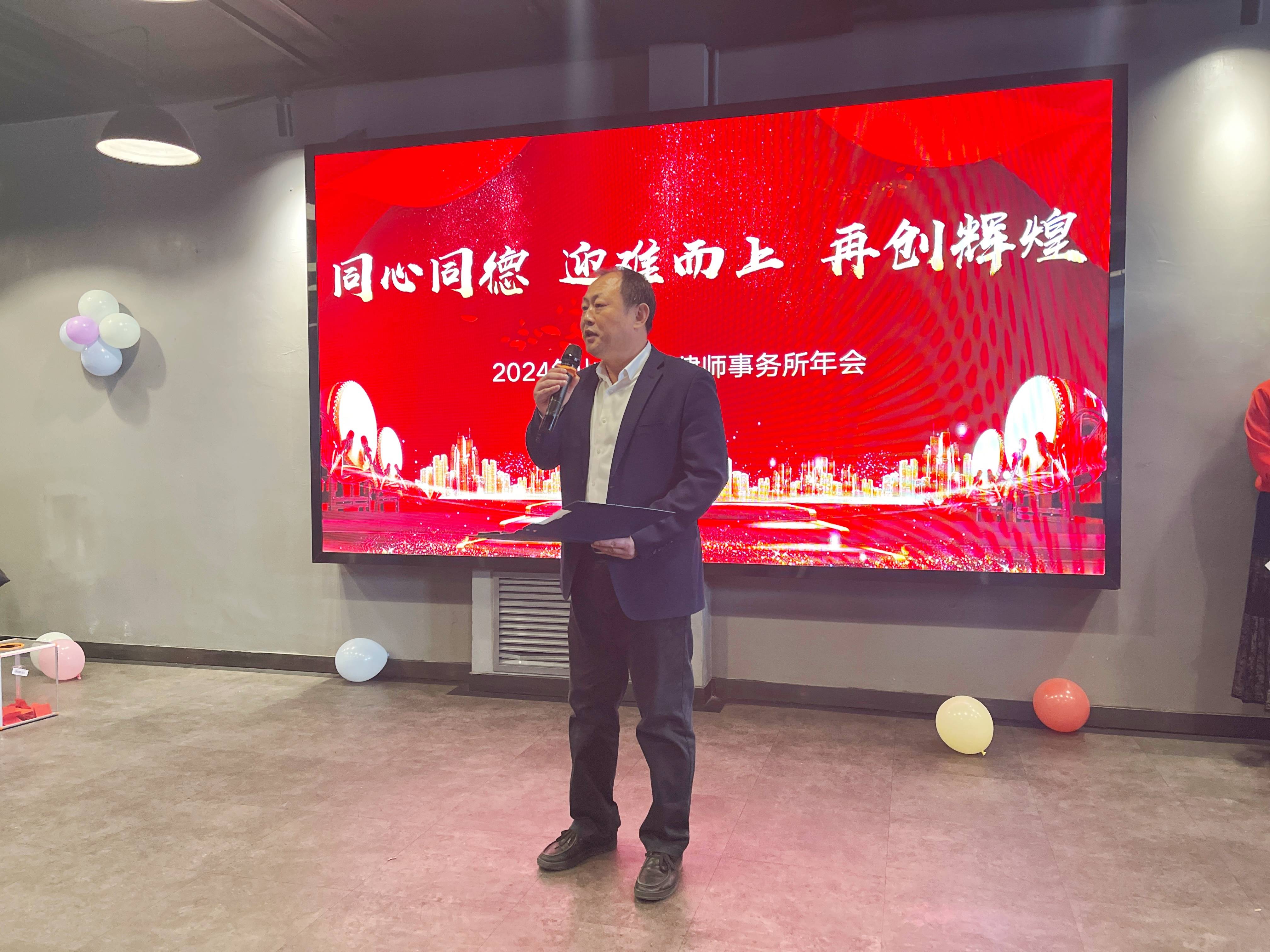 过往为序,华章日新。2024年1月27日上午九时,山东鲁北律师事务所2023年度工作总结大会暨2024迎新年会在鲁北所大会议室隆重举行。律所主任刘洪利,副主任程伟、曹婧,监委会主任郝建光,包括垦利分所、河口分所、广饶分所在内的全体执业律师、实习律师、财务和行政人员参加了本次会议。