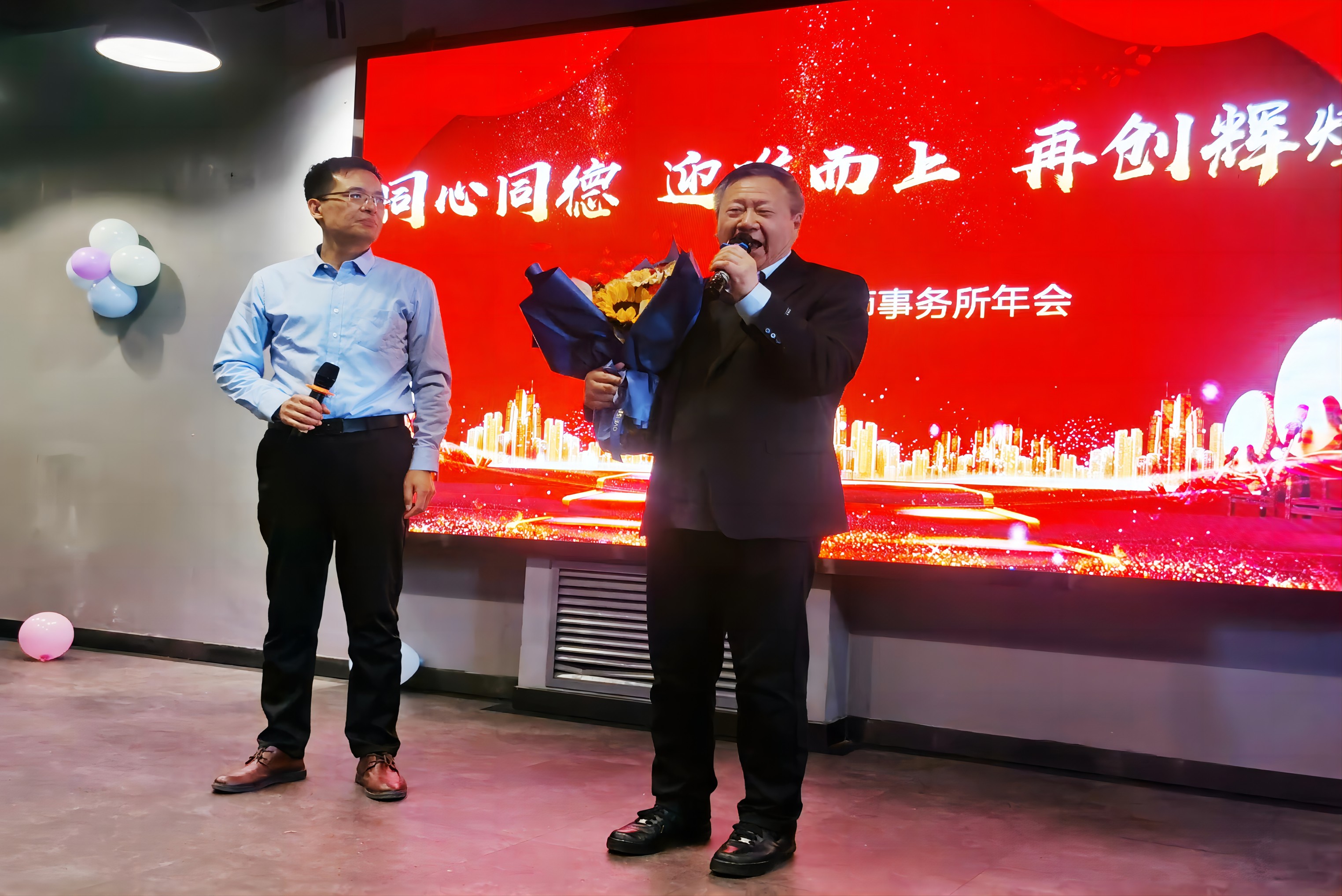 根据节目安排,首先由刘洪利主任为律所德高望众的原主任、鲁北所五位创建人之一郝建光律师颁发特别贡献奖,感谢郝建光律师为律所作出的特别贡献,感谢老主任三十年如一日守护和关爱着律所的这种精神。