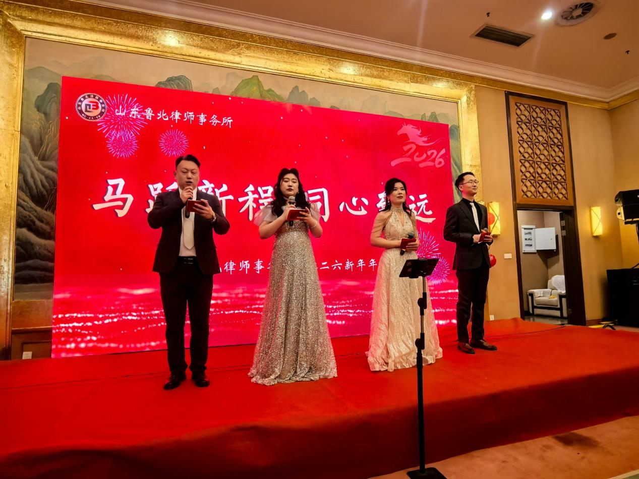 岁序更替,华章日新;骏马奔腾,万象更新。在这辞旧迎新、福启新元的美好时刻,山东鲁北律师事务所以“马跃前程,同心致远”为主题的2026新年年会如期举行。全体同仁欢聚一堂,共忆往昔耕耘之路,共话未来奋进之途,在温馨热烈的氛围中,共同镌刻属于鲁北律所的年度记忆与崭新期许。
