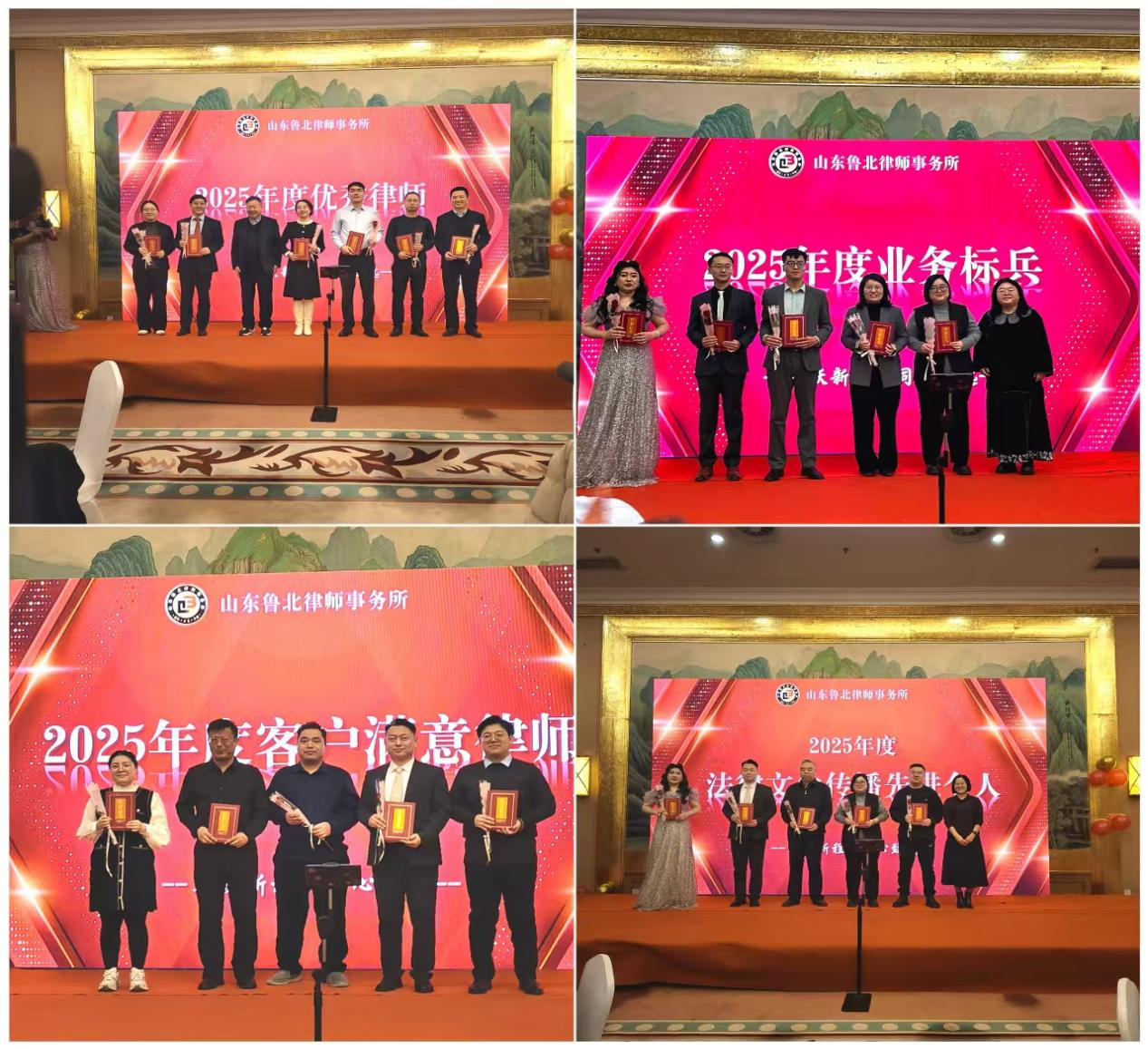 致辞过后,备受期待的颁奖环节正式拉开帷幕。这一环节旨在表彰先进、树立榜样,激励全体同仁在新的一年里再创佳绩。本次年会设立了“优秀律师”、“业务标兵”、“客户满意律师”、“法律文化传播先进个人”四大奖项,每一个奖项的背后,都是获奖者在专业领域的深耕细作、在服务客户时的精益求精、在业务拓展中的锐意进取。获奖代表纷纷表示将把这份荣誉化为前行的动力,在未来的工作中继续发挥榜样作用,与各位同仁携手并肩,为律所的发展贡献更多力量。