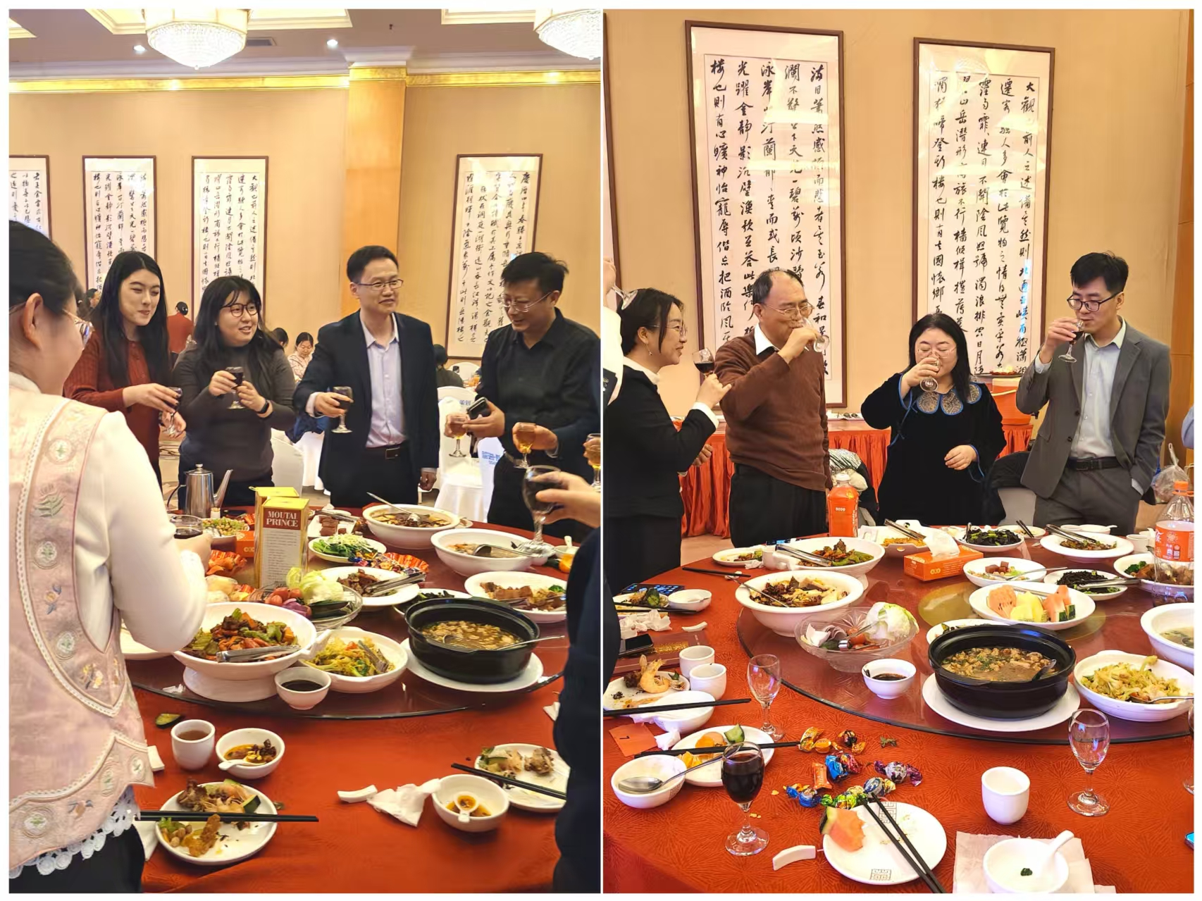 节目表演落下帷幕,温馨热闹的团圆午宴随即开启。同仁们三五成群围坐一堂,卸下了工作的忙碌,畅叙过往并肩作战的点滴时光,畅谈新一年的规划与期许。