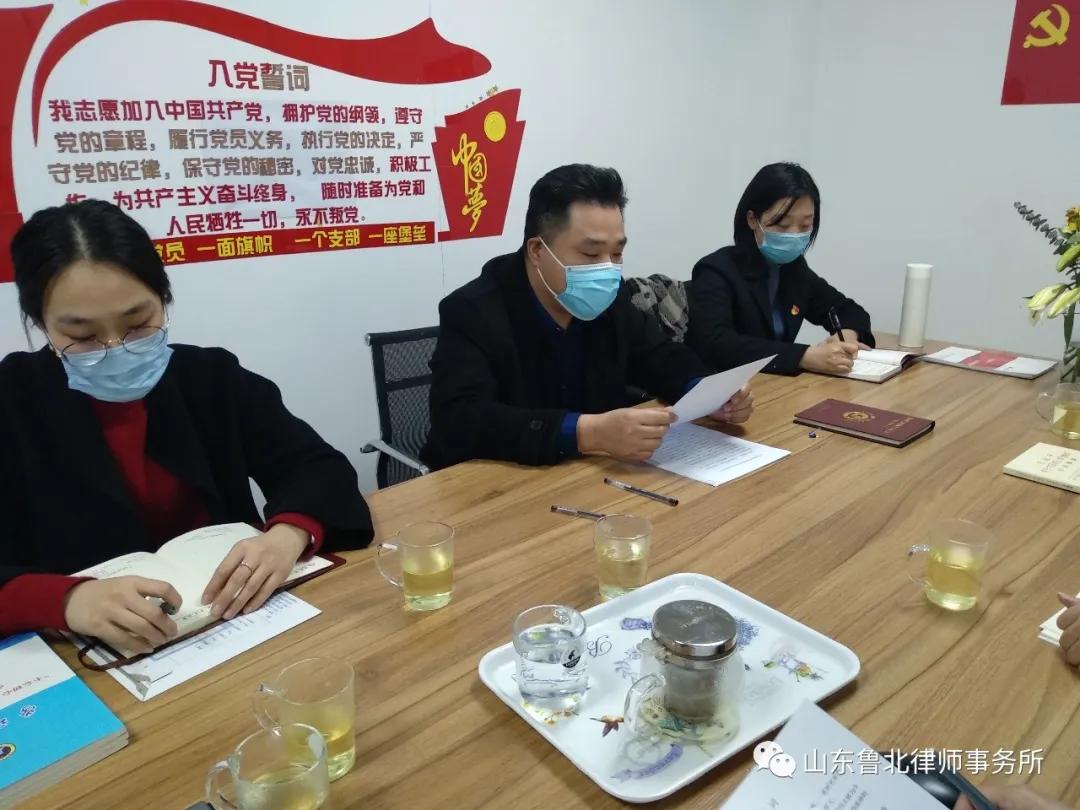 2020年3月13日星期五下午3时,中共山东鲁北律师事务所党支部召开全体党员大会,研究审查预备党员程伟同志转为中共正式党员事宜。根据发展党员有关规定,东营市律师行业党委指派律师行业党委委员王读文同志到会指导。