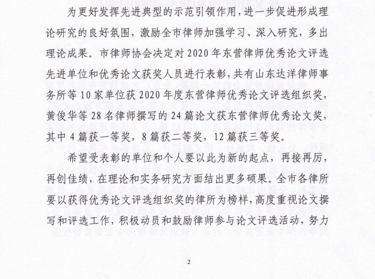 祝贺山东鲁北律师事务所荣获2020年东营律师优秀论文组织奖及律师个人一等奖、三等奖