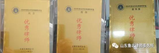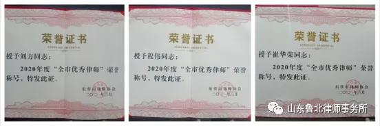 鲁北荣誉|热烈祝贺我所刘方律师、程伟律师及垦利分所崔华荣律师荣获东营市2020年度“全市优秀律师”荣誉称号