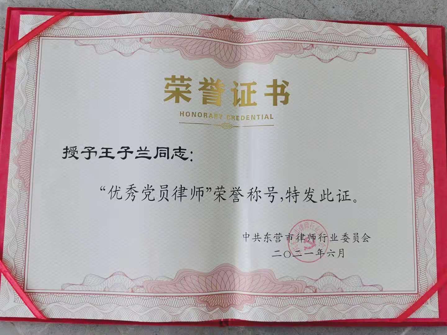 近日,在中共东营市律师行业委员会发布的《关于表彰全市律师行业先进基层党组织、优秀党员律师及优秀党务工作者的通报》中,山东鲁北律师事务所党支部书记王子兰被评为“优秀党员律师”。